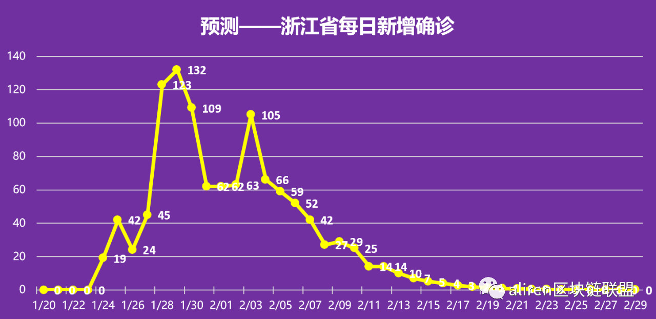 浙江省每日新增已經(jīng)連續(xù)輸入低于5,根據(jù)模型預(yù)測,浙江省的疫情將在2月29日基本結(jié)束。