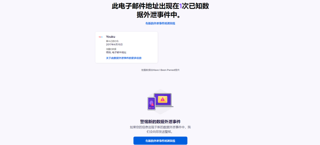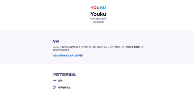 Firefox Monitor顯示Youku是在2016年12月1日發(fā)生了數(shù)據(jù)外泄的事件,我的密碼和電子郵件地址都被泄露了。