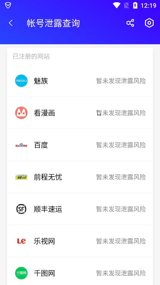 如果一些注冊(cè)過(guò)的網(wǎng)站在這里沒(méi)有查詢到,是因?yàn)榫W(wǎng)站不在騰訊手機(jī)管家的檢測(cè)范圍內(nèi)。