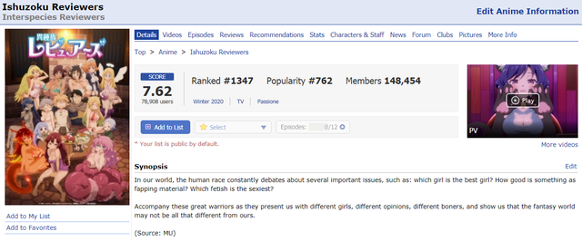 《異種族風(fēng)俗娘評鑒指南》這部動畫最近因為一些風(fēng)波導(dǎo)致評分暴漲到9.21分,登上了歷史第二的位置,僅比《鋼之煉金術(shù)師FA》稍低一點點。不過最近評分網(wǎng)站MAL官方調(diào)整了這部動畫的評分,使評分馬上降到了7.62分,這一舉動也引起了很多網(wǎng)友的不滿,在這部動畫的評論里已經(jīng)刷了3000多樓,來向官方表達觀眾自己的意見。首先為不了解這部動畫的觀眾介紹一下,《異種族風(fēng)俗娘評鑒指南》是日本動畫公司制作的電視動畫,講述的是三位主角在種族多樣的異世界當(dāng)中冒險的故事。原作漫畫其實比較克制,但動畫制作的時候添加了很多“私貨”,導(dǎo)致動畫的尺度一下被拉高,甚至普通的電視臺都不能接受,最后被迫下架。不過仍然有部分電視臺在播出,不用擔(dān)心動畫會停播。但是MAL官方反對這種做法, 認為這是在破壞評分的真實性,和惡意刷分性質(zhì)一樣,于是就過濾了很多新注冊賬戶的評分,使作品分數(shù)回到了之前的七點幾分,雖然也不能說這個分數(shù)有多準確,但至少要比之前的9.2高分理智一些雖然官方的說法是“惡意刷分”,但是有些網(wǎng)友還是不滿意這樣的做法,他們的理由是自己所做的一切都是符合網(wǎng)站規(guī)定的,不管是評分也好,還是注冊也好,都是自己獨立行為,不應(yīng)該被網(wǎng)站認定為惡意刷分。同時,如果10分就是不理智的評分的話,那么下面幾千票的1分是不是也將這部動畫評價得太低了,也需要限制?其實關(guān)于網(wǎng)站評分問題,已經(jīng)被提到過很多次了,有網(wǎng)友的建議是,如果要放任,那就像B站一樣,完全不要管網(wǎng)友的“沖動評分”,雖然評分不能反映作品品質(zhì),但仍有價值;如果要嚴格,那就完全限制新用戶的評分功能,至少讓用戶有幾個月的“緩沖期”,這樣就能保證分數(shù)不會被外界過度干擾。而如果這兩種都做不到的話,對有些作品嚴格,有些作品不管的雙標行為,那對于作品粉絲來說,肯定是不會滿意的。你對這樣的“評分控制”有什么看法呢?