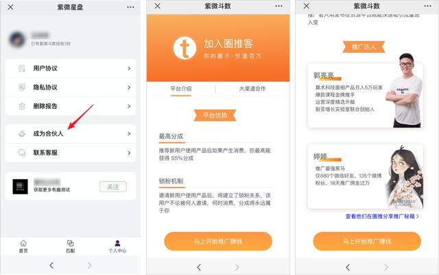 看了一圈各色測(cè)試以后,在「?jìng)€(gè)人中心」的頁(yè)面,我發(fā)現(xiàn)了一個(gè)“成為合伙人”的標(biāo)識(shí)。