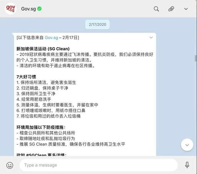 新加坡官方的每日自動推送疫情情報 Sarah 圖