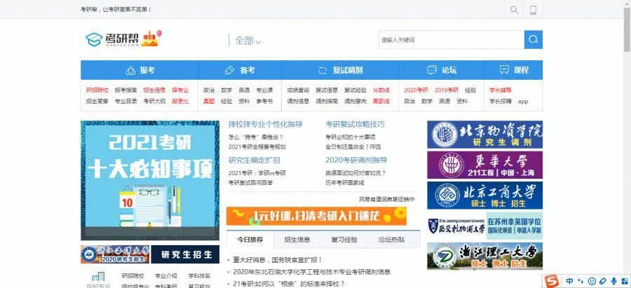 推薦這個網(wǎng)站的原因是因為里邊的論壇版塊。在論壇版塊里有來自考研黨的各個方面分享心得,有了別人的經(jīng)驗,站在巨人肩膀上,有助于我們望的更遠(yuǎn)。不過這個網(wǎng)站內(nèi)廣告太多,這方面很不良心,大家一定要擦亮眼睛。