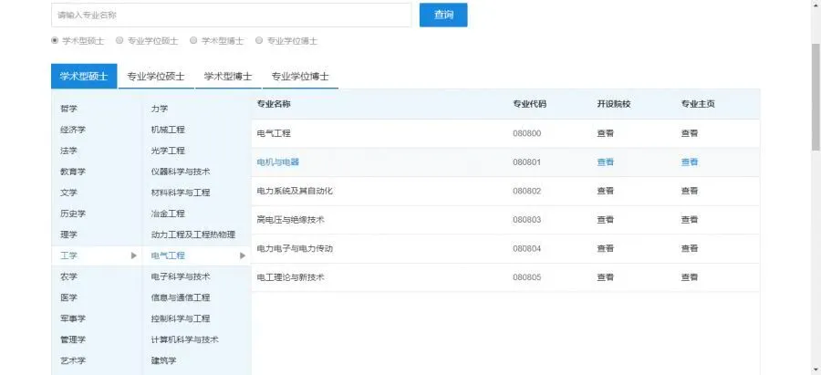 在“專業(yè)庫”中可以查看考研專業(yè)的專業(yè)代碼、開設(shè)院校、專業(yè)介紹及該專業(yè)院校分布等信息。具體界面如下圖所示:在“碩士目錄”中可以查看學(xué)習(xí)方式、招生人數(shù)、考試范圍等內(nèi)容。具體界面如下如所示: