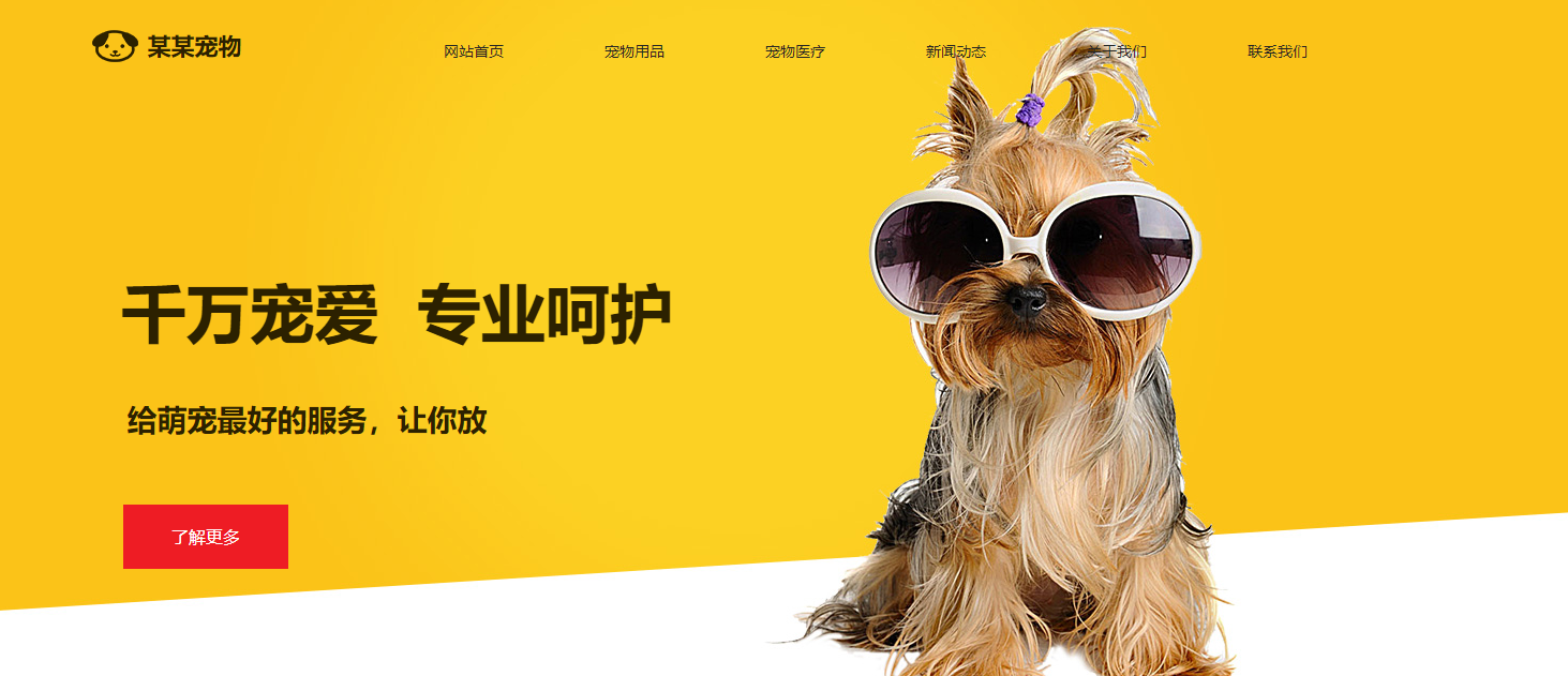 網(wǎng)站首頁、寵物用品、寵物醫(yī)療、新聞動態(tài)、關(guān)于我們、聯(lián)系我們幾個大欄目
