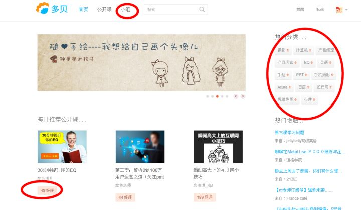 1.通過“小組”“好評(píng)”“分類標(biāo)簽”等形式,形成良好的遴選規(guī)則,智能化置頂熱門課程: