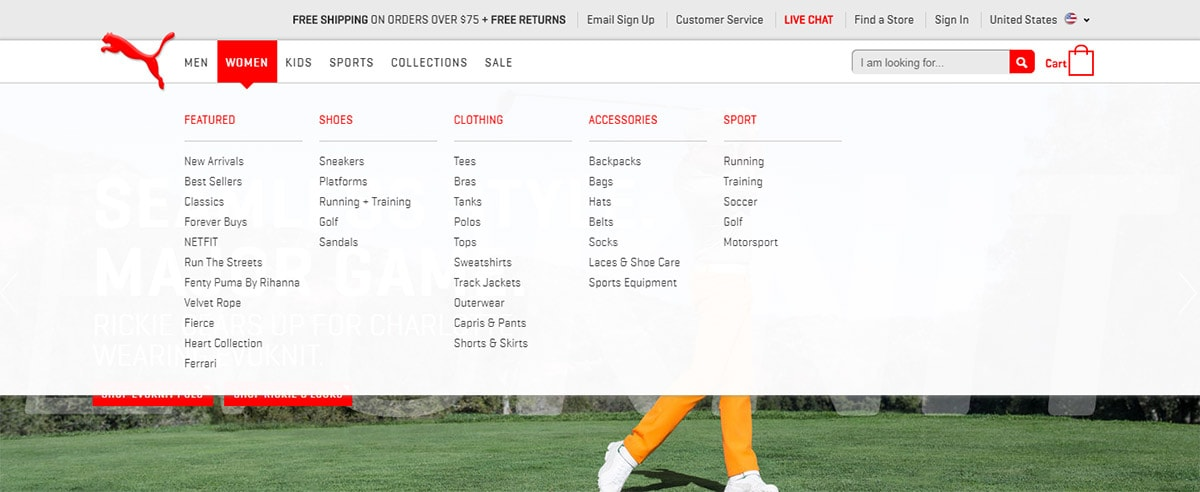 巨型導(dǎo)航儀最有價值的設(shè)計風(fēng)格是 圓柱結(jié)構(gòu)。 這使您可以為鏈接指定“類別”并創(chuàng)建更深的鏈接,而無需使用多個彈出菜單。大型導(dǎo)航下拉列表可以覆蓋整個頁面,因此您通??梢栽谝粋€下拉列表中至少容納3-4列。