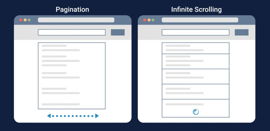 無(wú)論您的網(wǎng)站提供哪種內(nèi)容,您都希望獲得盡可能多的展示機(jī)會(huì)。在進(jìn)行內(nèi)容分頁(yè)的情況下,用戶只有單擊它們,才能看到下一頁(yè)的內(nèi)容,而無(wú)限滾動(dòng)會(huì)將您的所有內(nèi)容放在一個(gè)無(wú)休止的長(zhǎng)頁(yè)面上。一切都在“滾動(dòng)范圍”之內(nèi)。