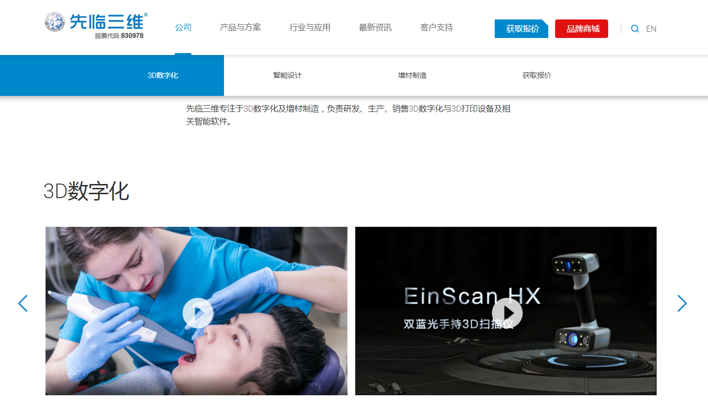 先臨三維(派迪科技案例)很好地展示了使用其產(chǎn)品所需的步驟,從而使訪問者可以清楚地了解其工作原理以及所帶來的好處。