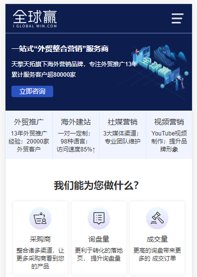 杭州派迪科技為高端客戶提供外貿(mào)網(wǎng)站咨詢策劃,外貿(mào)官網(wǎng)設(shè)計(jì),外貿(mào)官網(wǎng)建設(shè)開發(fā)服務(wù),以谷歌搜索引起算法為基礎(chǔ),為各行業(yè)外貿(mào)公司提供高端企業(yè)外貿(mào)網(wǎng)站定制、策劃、設(shè)計(jì)、互動(dòng)與制作