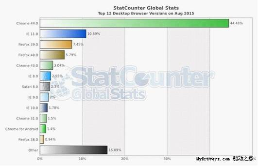 權(quán)威統(tǒng)計機構(gòu)StatCounter在今年8月份給出了一份瀏覽器市場報告,從統(tǒng)計數(shù)據(jù)來看,Chrome 44以44.48%的逆天份額排名第一,IE 11(10.89%)、Firefox(7.45%)分列二三位。值得一提的是,移動端的Chrome For Android也有1.4%的份額,表現(xiàn)讓人稱道。品牌微網(wǎng)站建設公司如是說到: