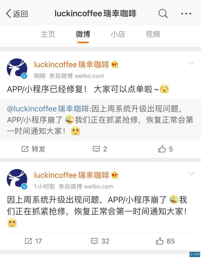 • 瑞幸回應(yīng)APP、小程序崩潰:因上周系統(tǒng)升級所致 目前已恢復(fù)