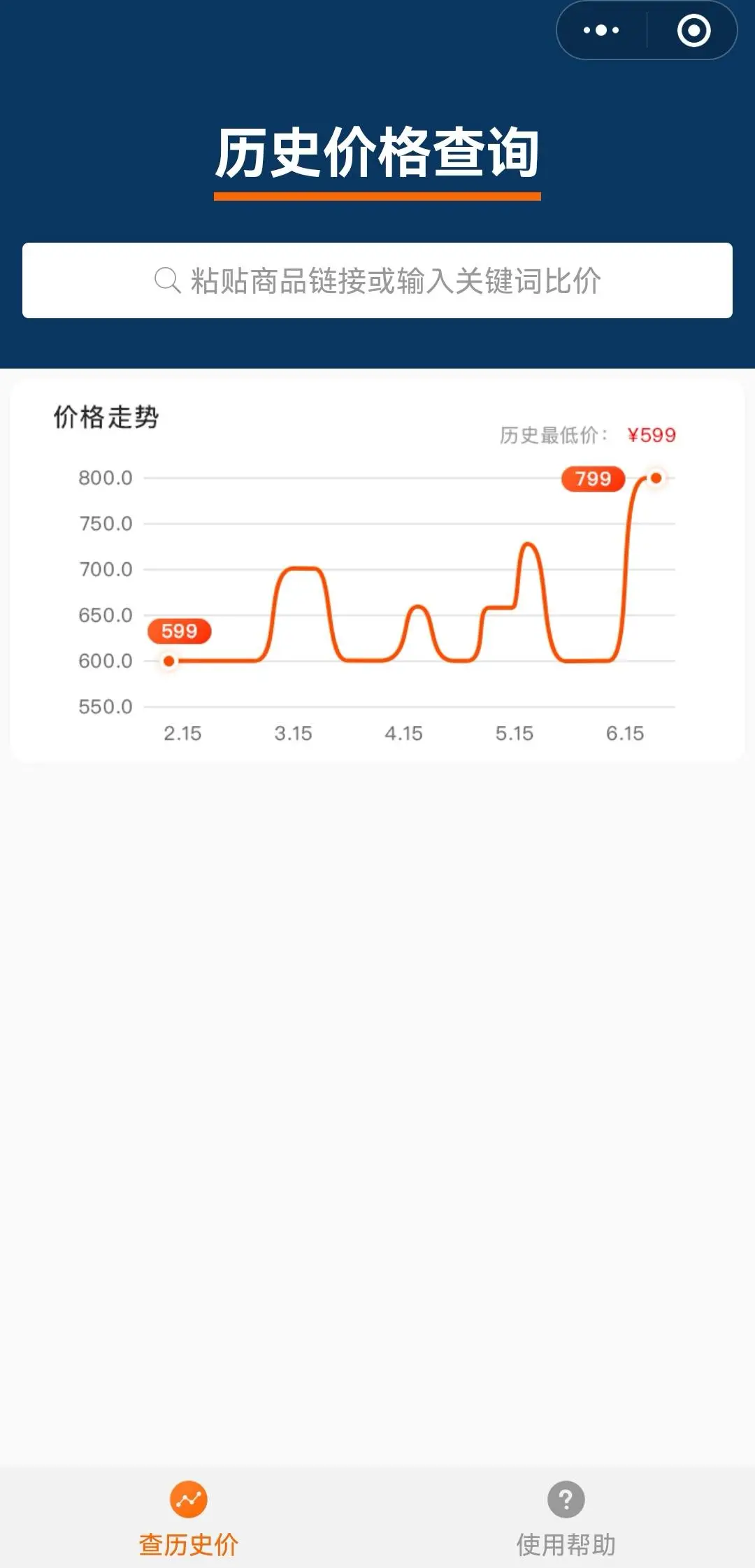 只要打開我們的微信小程序,復(fù)制商品鏈接即可搜索,同時(shí)還可以看見商品的價(jià)格走勢(shì)以及歷史活動(dòng)詳情。