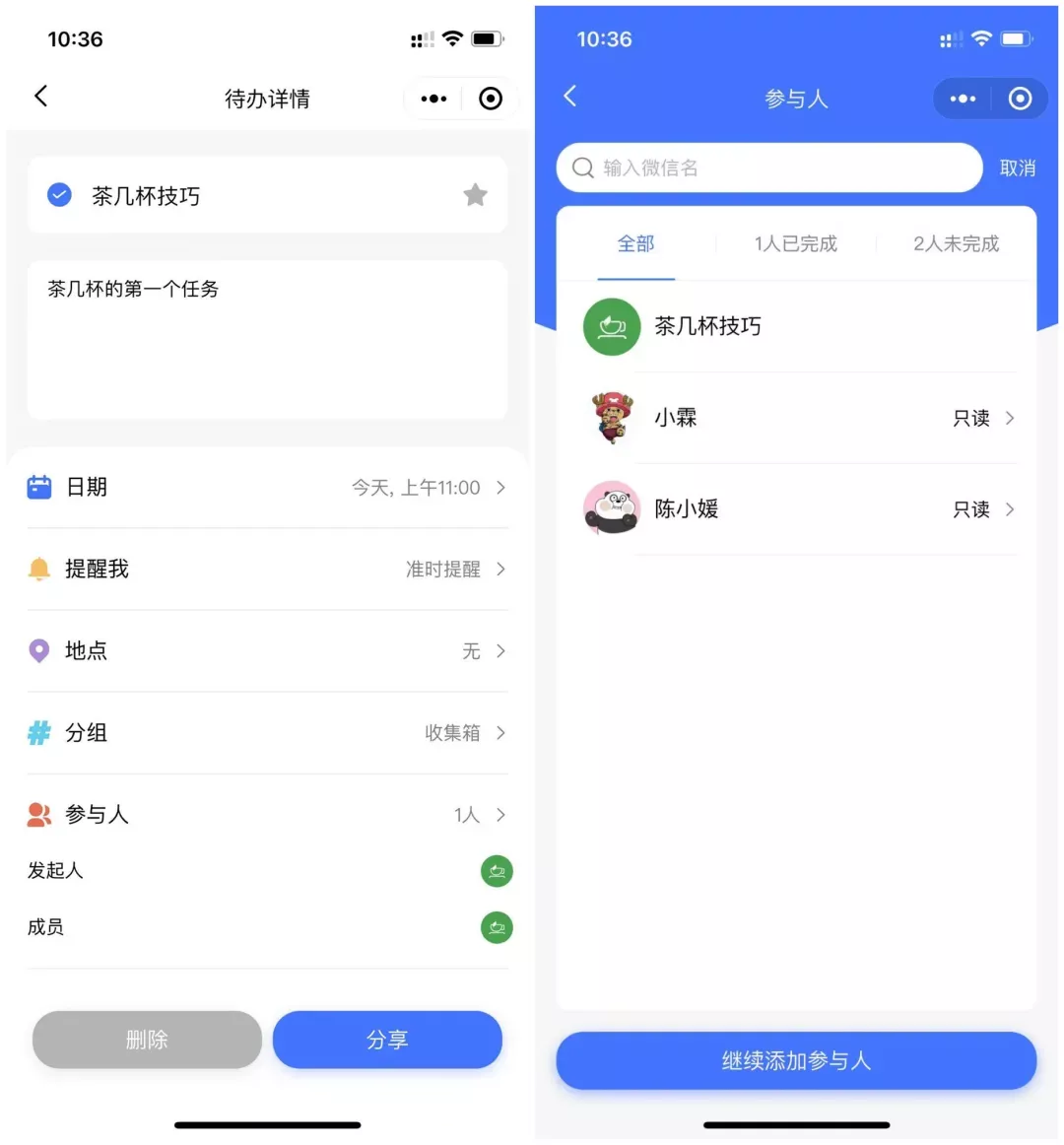 騰訊待辦小程序的最大的特色就是能有效地與微信相融合,帶有天然的社交屬性。