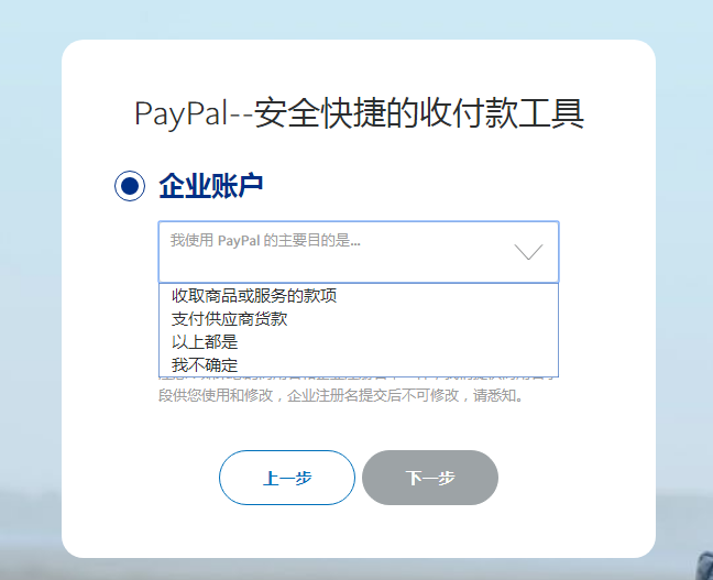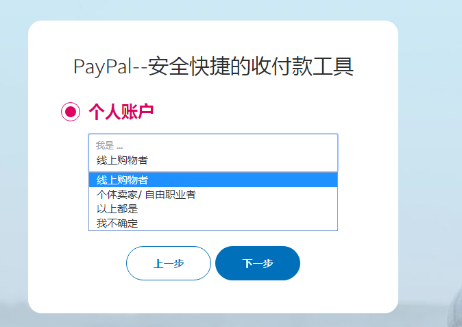 1. 注冊(cè)PayPal賬號(hào)(如已有賬號(hào)可跳過此步驟)