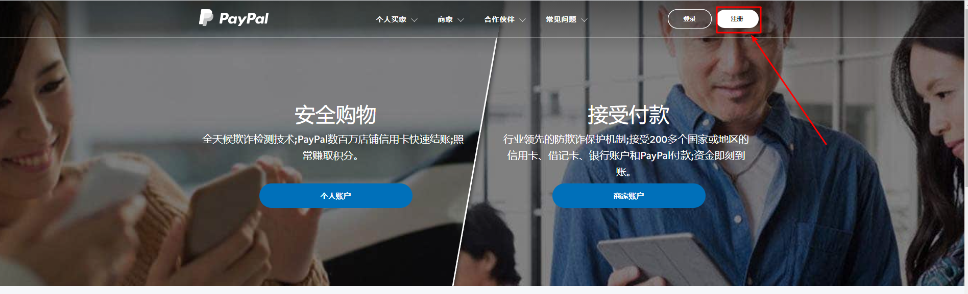 1.1 登錄paypal官網(wǎng),進(jìn)行賬號(hào)注冊(cè)。