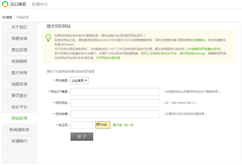 收錄地址:http://info.so.com/site_submit.html