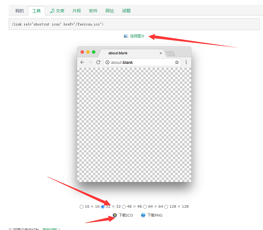 上傳到在線網(wǎng)站,生成后下載? 32*32像素的? ICO 文件即可