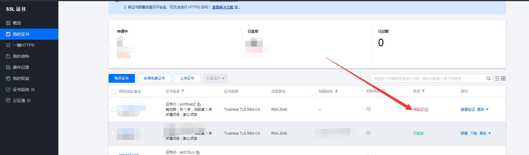 9. 回到 “我的證書” 顯示待驗證