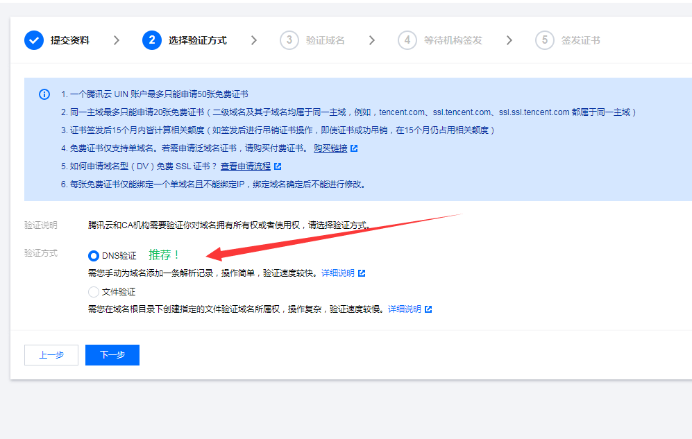 7. 選擇 DNS驗證