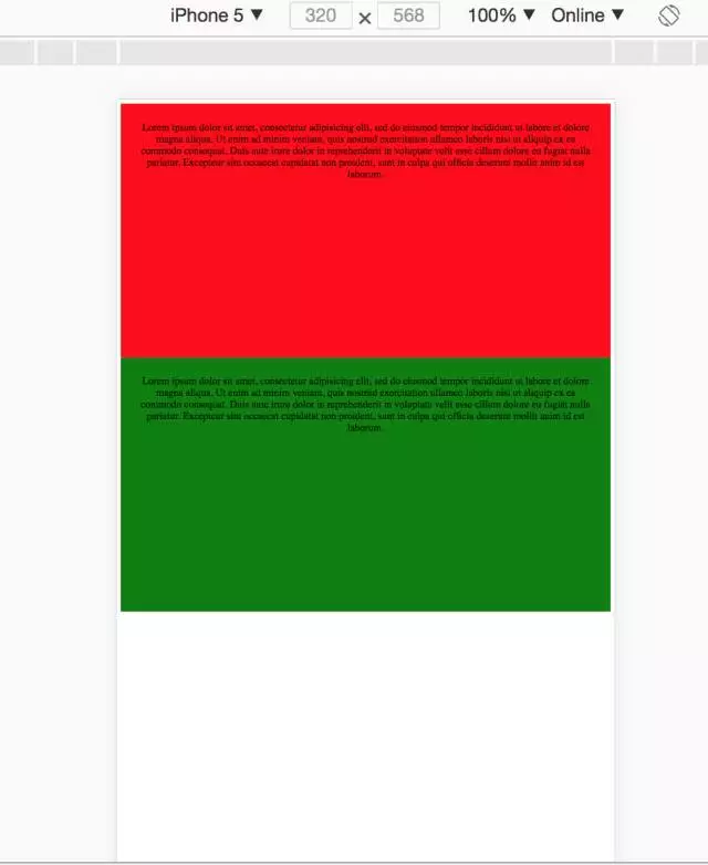 我們簡單解釋一下上述代碼片段 min-width指的是當(dāng)屏幕尺寸大于當(dāng)前值的時(shí)候樣式生效。 外層的 div包裹內(nèi)層的兩個(gè) div。 col-md-6col-sm-12當(dāng)屏幕尺寸大于 768px的時(shí)候子 div寬度是父 div的一半,所以是并排。當(dāng)屏幕尺寸大于 480px的時(shí)候子 div寬度和父 div的寬度一樣。下圖為不同尺寸下的效果圖。