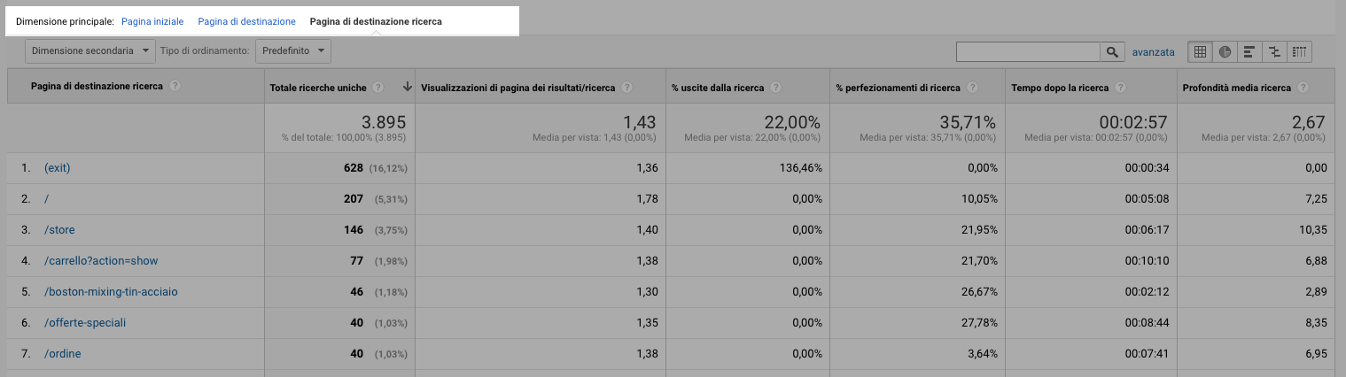 著陸頁:用戶查看研究結(jié)果后進(jìn)入的頁面我發(fā)現(xiàn)“搜索著陸頁”維度是三個(gè)維度中的一個(gè),它提供了一些關(guān)于搜索后用戶行為的有趣信息,尤其是與電子商務(wù)探索相結(jié)合時(shí),但總的來說,我可以說這部分不在我最常用......也許你會(huì)發(fā)現(xiàn)我已經(jīng)逃脫的信息?