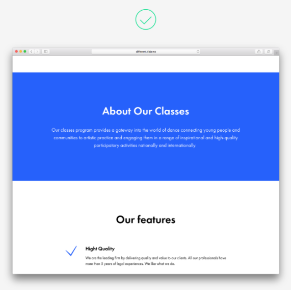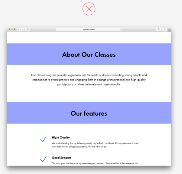 避免用顏色強(qiáng)調(diào)狹窄的頁面元素。只是看起來不太好。例如,標(biāo)題已經(jīng)很好地標(biāo)記了,這要?dú)w功于它們的大小、字體粗細(xì)和填充。您想突出顯示頁面上的特定點(diǎn)嗎?為整個塊使用彩色背景,包括相關(guān)的標(biāo)題和文本副本。