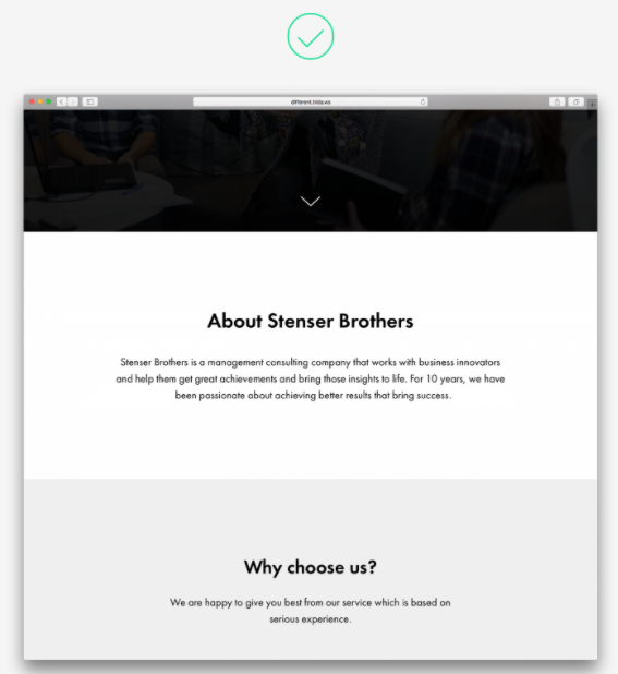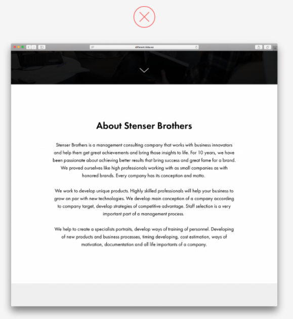 當文本很少時,在頁面上居中文本效果很好,否則,用戶很難有效地導航它。同時,從 24 像素開始增加字體大小。 如果您需要包含大量文本,請使用具有可折疊文本復制功能的塊