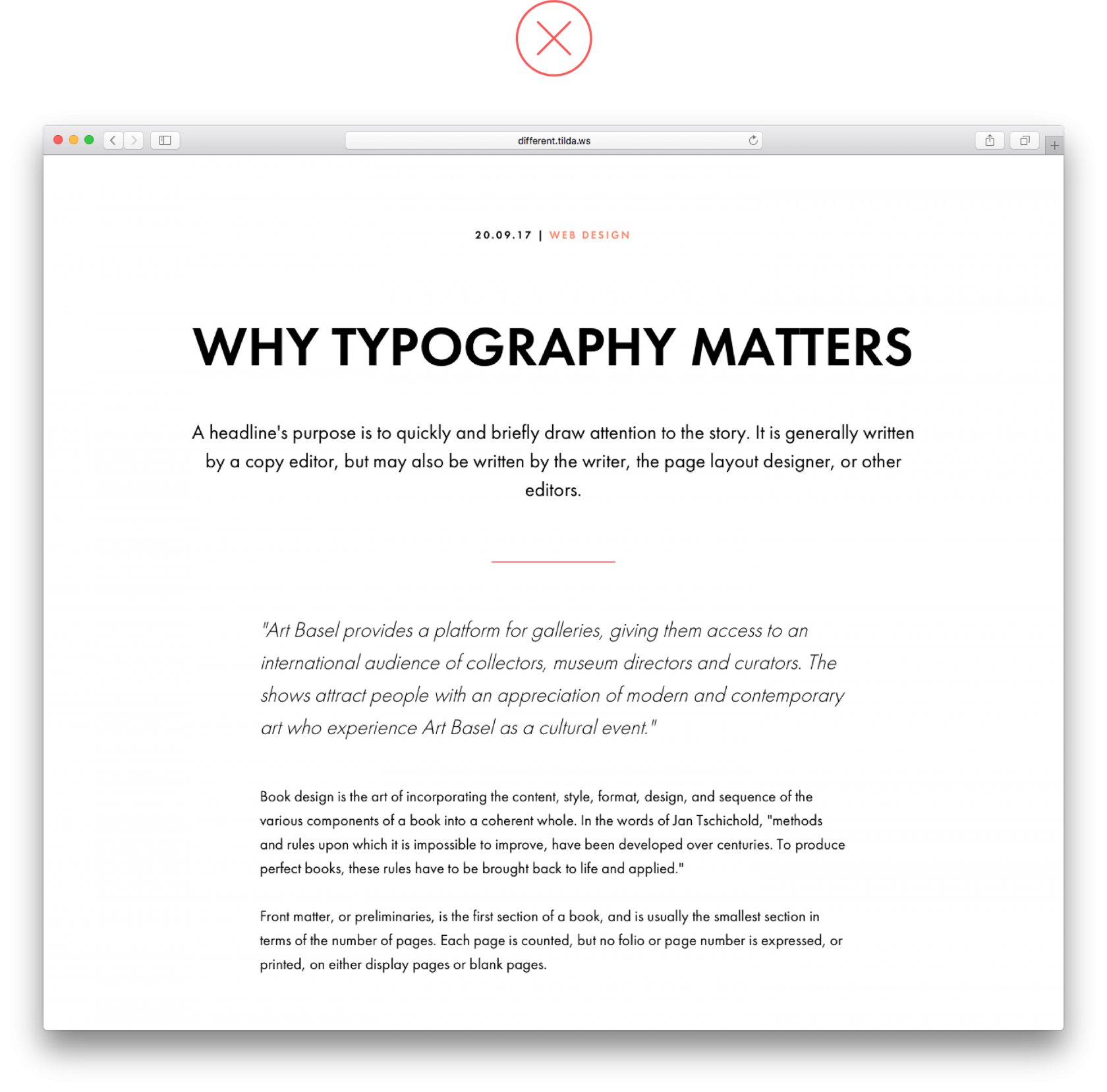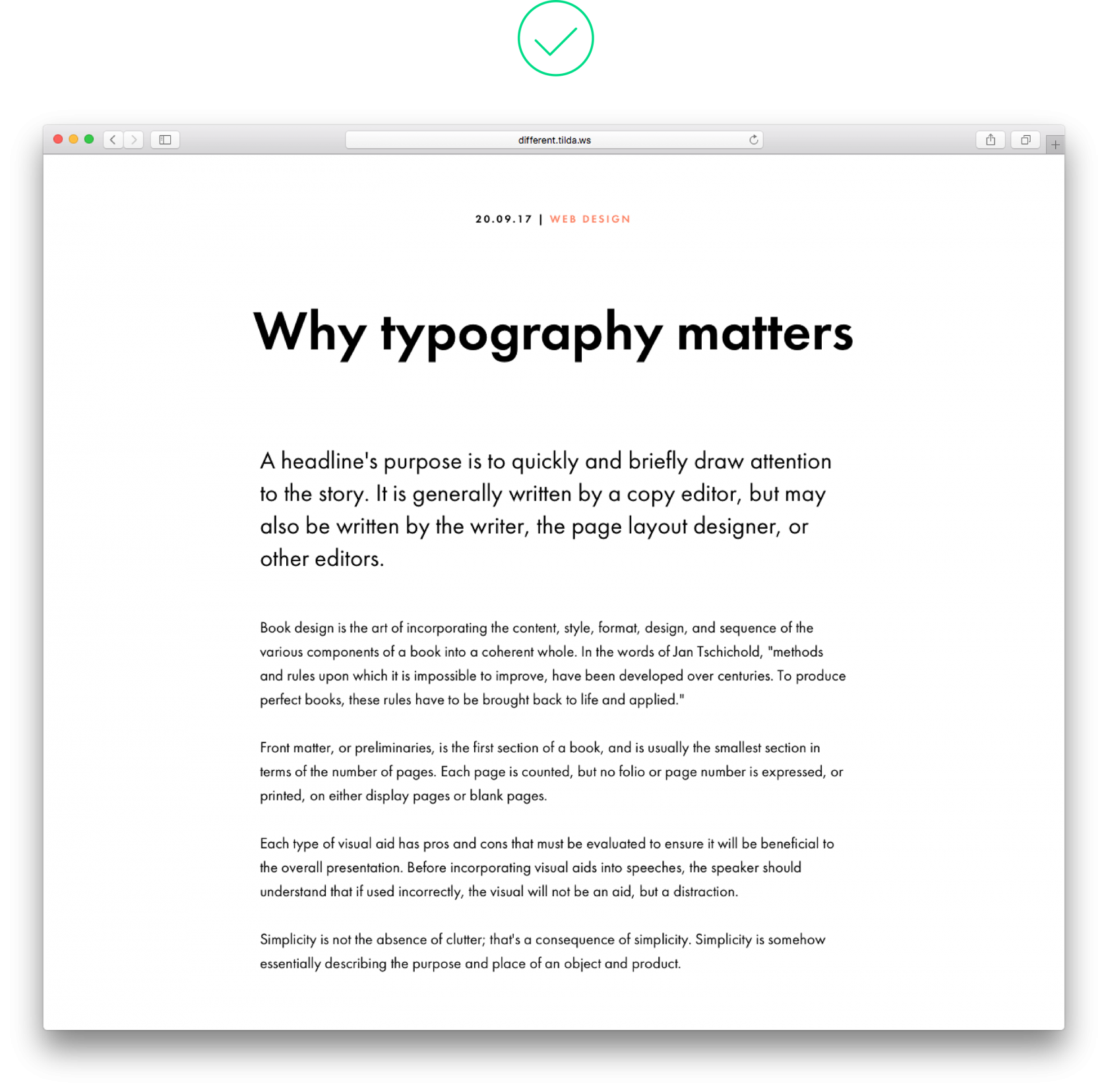 排版樣式越少,可見的重要元素就越多。強調(diào)標題和副標題并為關(guān)鍵短語使用對比就足夠了。