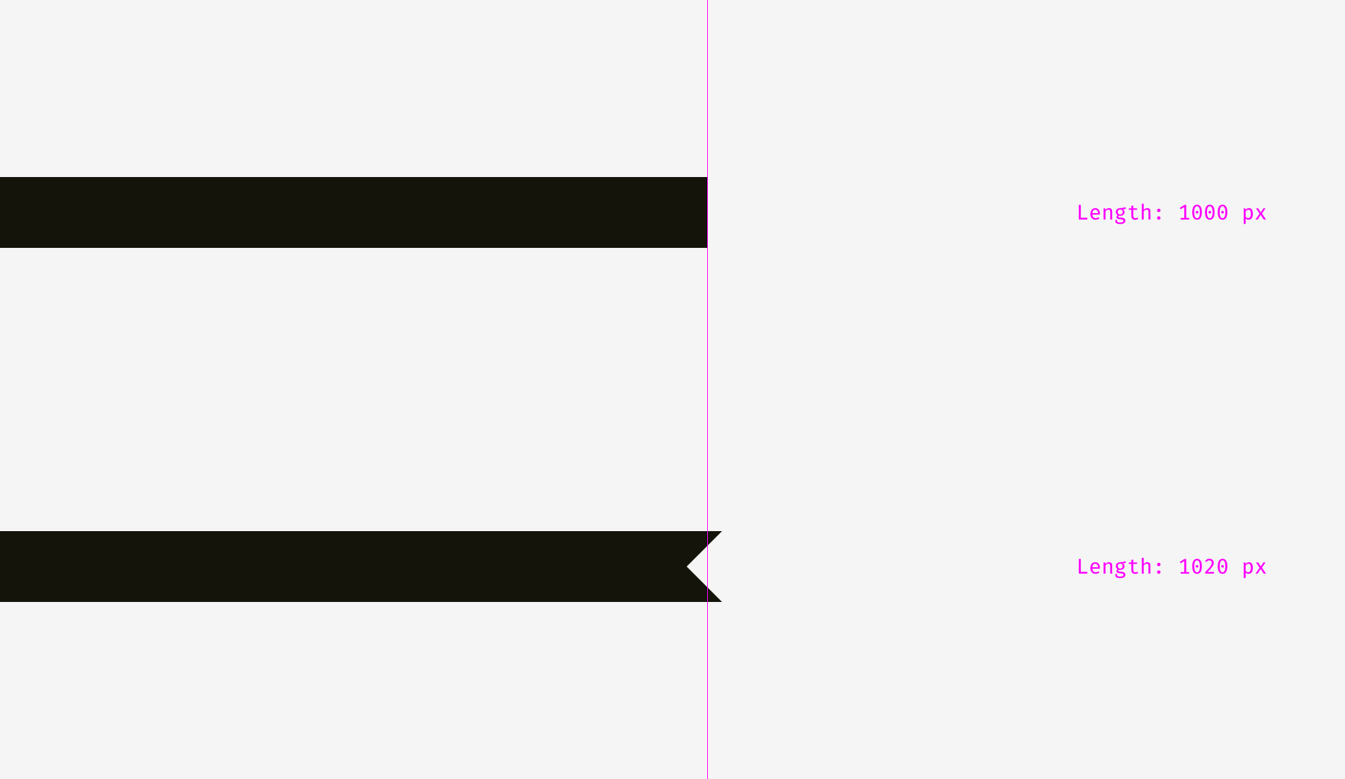 如果您查看像素,那么它們當(dāng)然是相等的。但從表面上看,下部條帶似乎更短。這里還有兩條。嗯,有什么變化嗎?這次我做了光學(xué)補(bǔ)償。簡(jiǎn)而言之,我稍微移動(dòng)了底部條帶,使牙齒從對(duì)齊線突出 20 像素。因此,從視覺(jué)上看,條帶看起來(lái)更平滑。