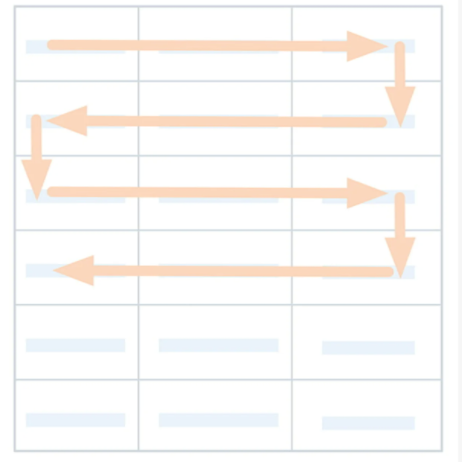 可用性研究表明,用戶在瀏覽功能比較表時經(jīng)常依賴割草機模式。這意味著它們從左上角的單元格開始,向右移動直到行尾,然后下降到下一行的最后一個單元格并返回到左側(cè)直到行尾。