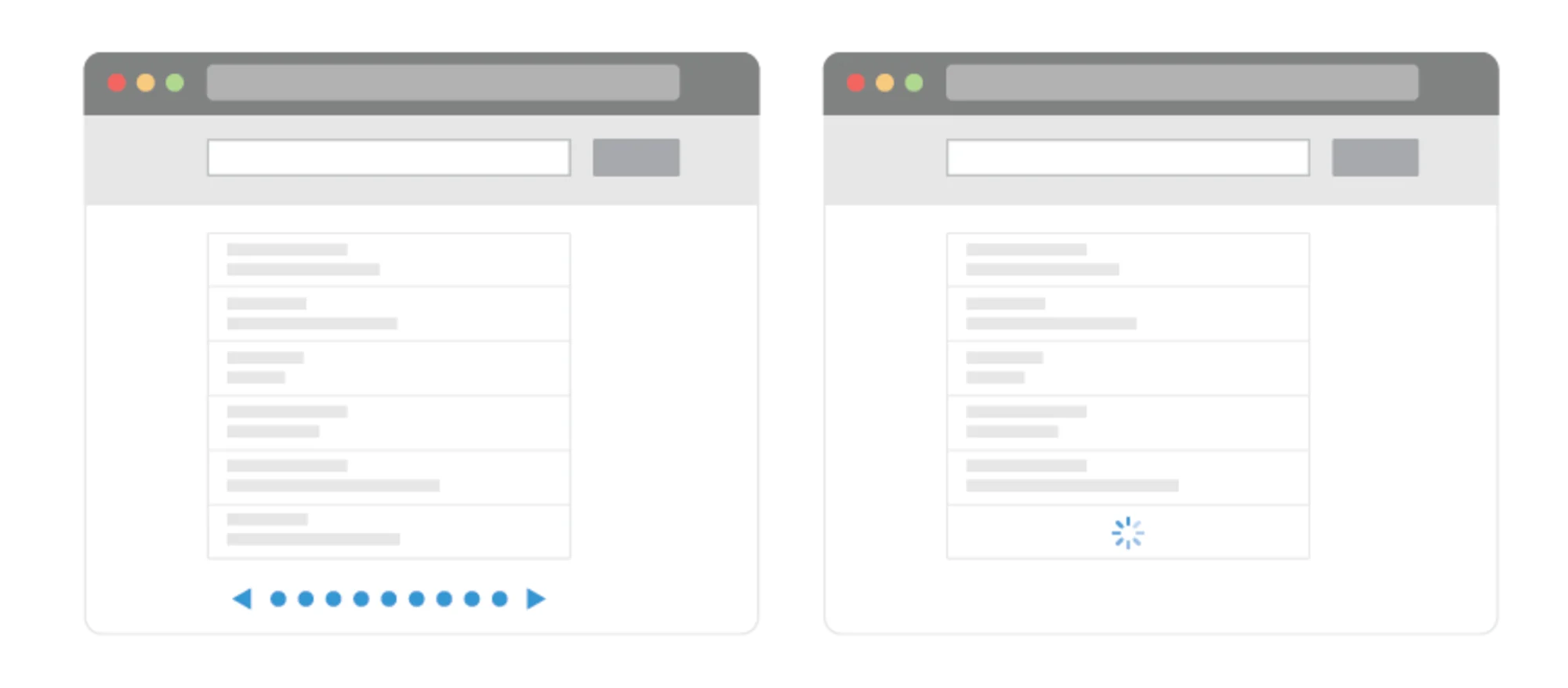 分頁(yè)和“加載更多”  # 我們可以通過(guò)回到通常的疑點(diǎn)來(lái)避免所有無(wú)限滾動(dòng)問(wèn)題:分頁(yè)。它有很多好處。有了它,用戶(hù)總有明確的開(kāi)始和明確的結(jié)束。當(dāng)用戶(hù)完成一個(gè)頁(yè)面并移動(dòng)到下一個(gè)頁(yè)面時(shí),有一個(gè)非常清晰的“切割”已經(jīng)和尚未看到的內(nèi)容,以及在導(dǎo)航過(guò)程中的完成感。