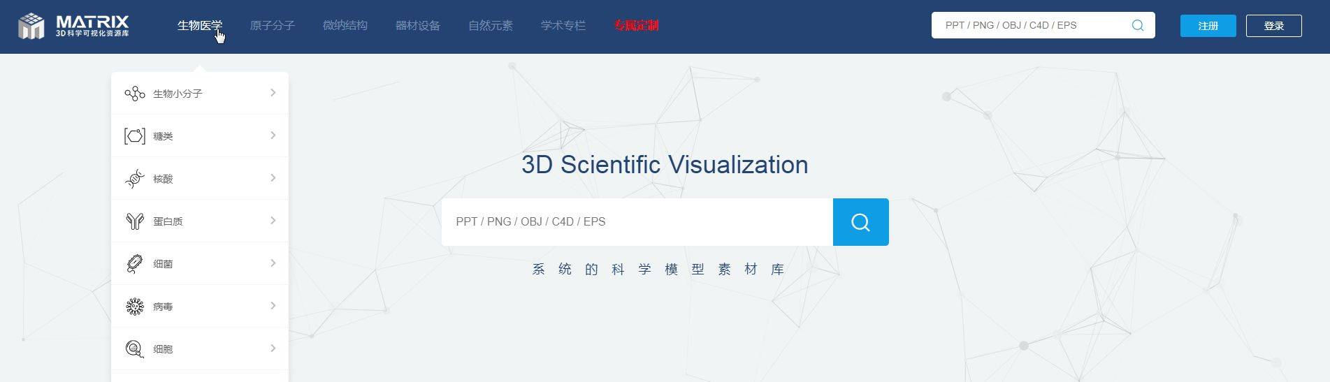 Matrix科學(xué)可視化資源庫是由杭州思斐邇(SPHERE)科技有限公司獨(dú)家推出的科研教育專用素材庫。內(nèi)含豐富的2D/3D科學(xué)圖像和模型素材,種類齊全,涵蓋數(shù)學(xué)、物理、化學(xué)、材料、生物醫(yī)學(xué)等各類科學(xué)領(lǐng)域。歡迎國(guó)內(nèi)外科學(xué)設(shè)計(jì)愛好者與我們合作,為科學(xué)可視化添磚加瓦。