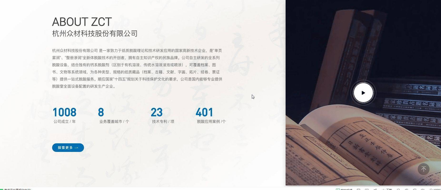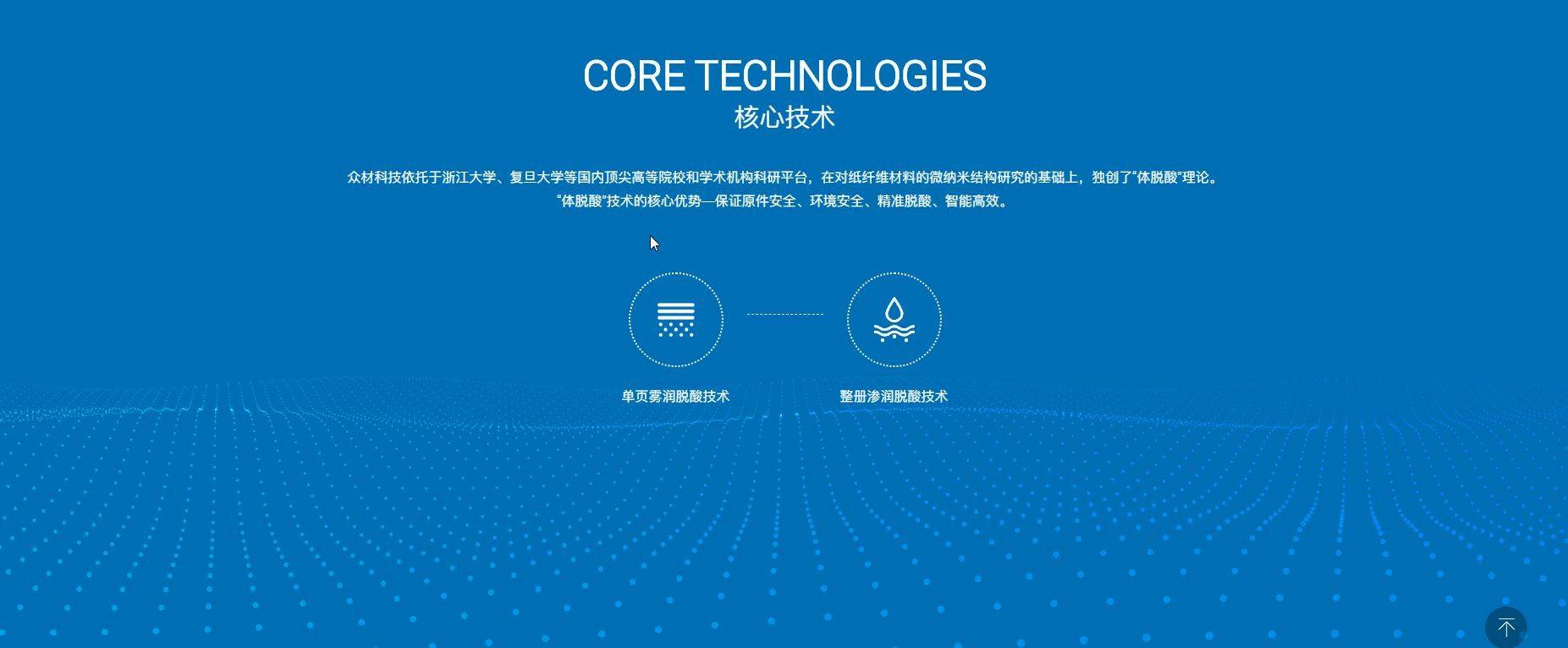 先通過視頻的方式直觀呈現(xiàn)了眾材科技的服務(wù)場(chǎng)景,讓用戶一眼就能明確眾材科技的業(yè)務(wù),讓 網(wǎng)站更具視覺沖擊力, 動(dòng)態(tài)效果細(xì)致到毫秒。