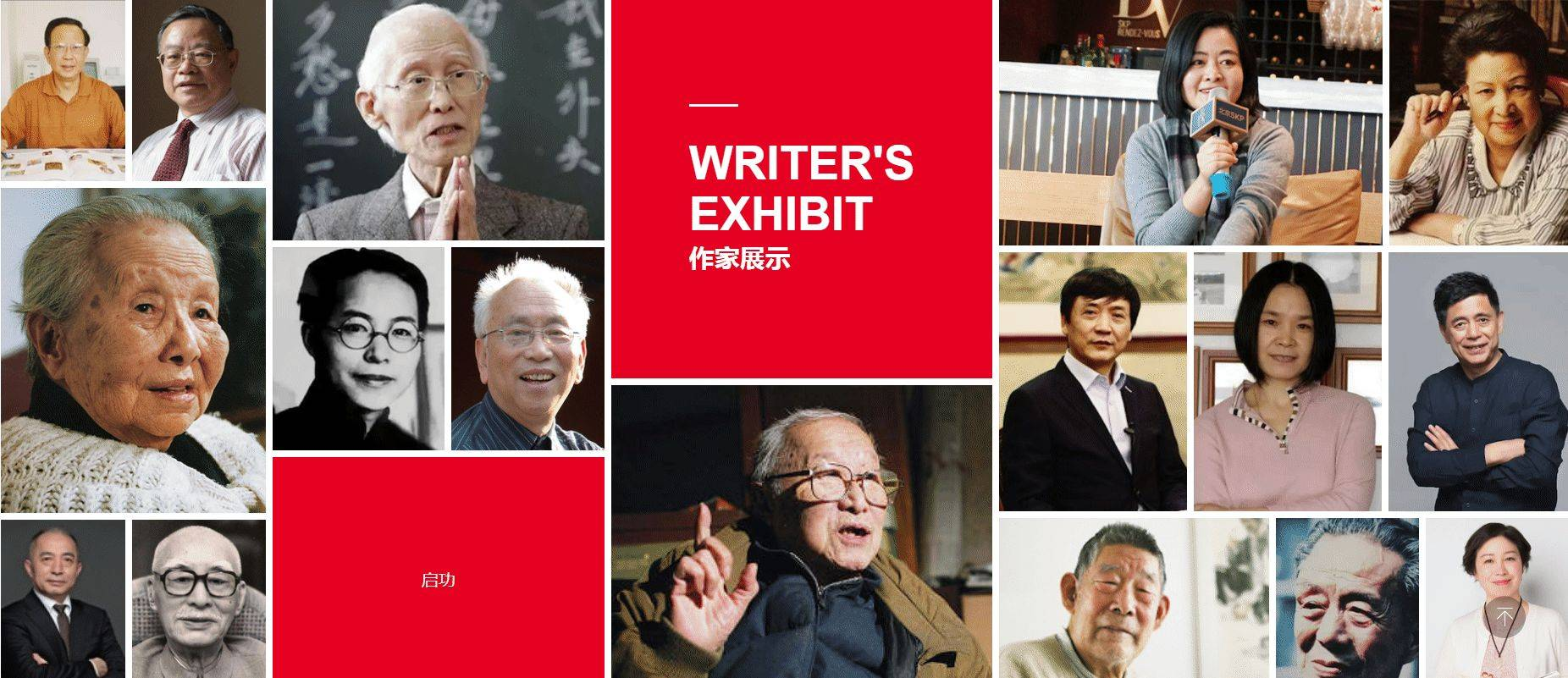 作家展示方式如何實現(xiàn)差極化及感染力,本次作家的展示采用大屏相冊鋪排的形式,結合中國紅,凸顯作家名稱,這些鮮活的色彩讓相對靜態(tài)的網(wǎng)站瞬間活躍了起來。