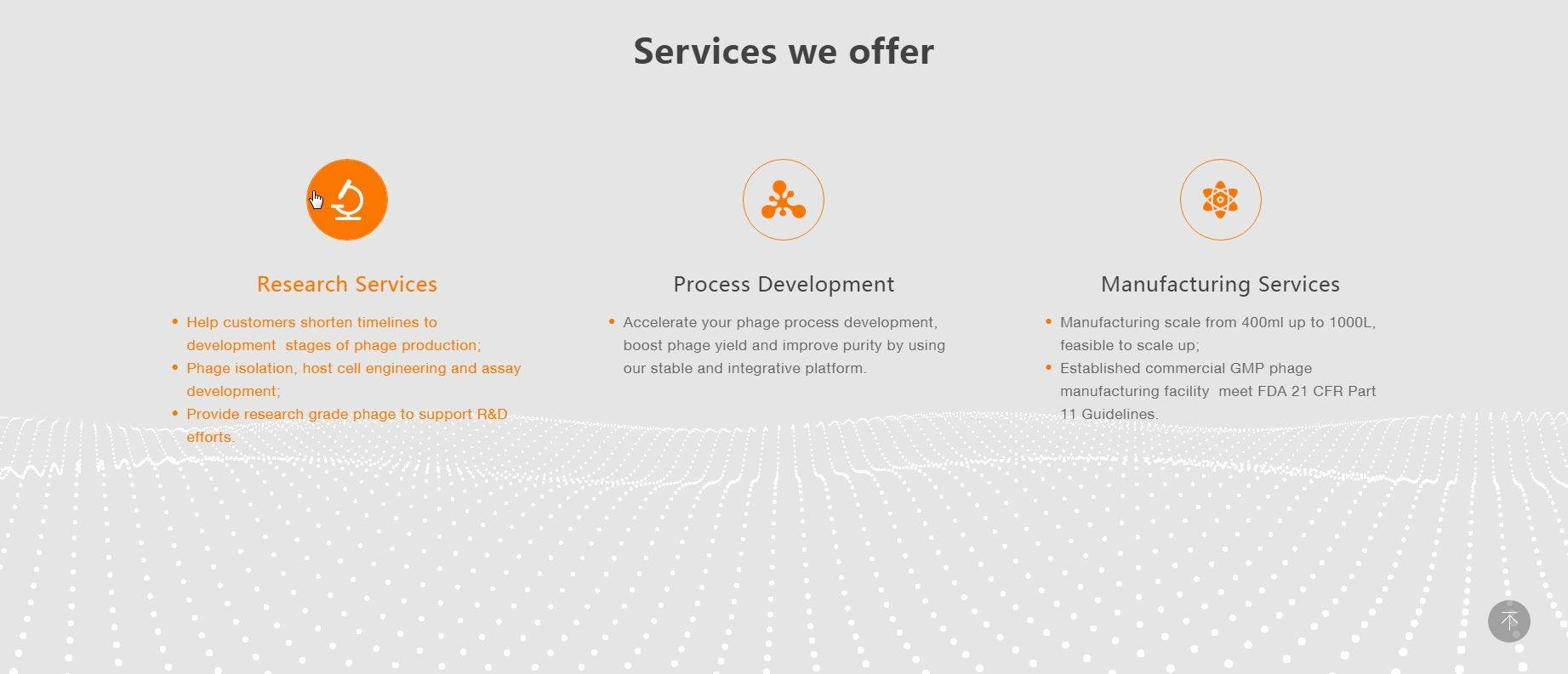 本次杭州派迪科技有限公司給PHAGE CDMO做的是一個高轉(zhuǎn)化行動號召力的英文網(wǎng)站建設(shè),PHAGE CDMO 是一家專業(yè)從事噬菌體生產(chǎn)的合同開發(fā)和制造公司。制造基地戰(zhàn)略性地位于中國的制造中心杭州,服務(wù)面向全球,在選擇建站公司的時候,經(jīng)過多家杭州網(wǎng)站建設(shè)公司對比,最終選擇了建站經(jīng)驗豐富,又注重用戶思維的杭州派迪科技有限公司。
