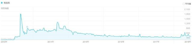 2013年 8月22日,百度宣布推出“輕應(yīng)用”,其特點為無需下載,但從百度指數(shù)也能夠發(fā)現(xiàn),輕應(yīng)用未能有太大的反響,搜索峰值不過2000左右,和微信小程序90000的峰值比起來差距顯著。