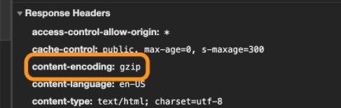 要在沒有外部工具的情況下檢查 GZIP 壓縮,您可以使用瀏覽器中的開發(fā)人員工具面板。大多數(shù)瀏覽器都允許您以這種方式檢查頁面元素和查看性能信息。 首先,在瀏覽器中加載您要查看的網(wǎng)頁。然后,打開開發(fā)人員工具面板并選擇網(wǎng)絡選項卡。您將看到網(wǎng)絡服務器發(fā)送的所有資源的列表(如果沒有,您可能需要重新加載頁面)。單擊一個資源可查看其內(nèi)容。確保選擇了標題選項卡,然后向下滾動到內(nèi)容編碼標題以查看使用了哪種方法。 以下是使用 Chrome 開發(fā)者工具使用 GZIP 壓縮的資源的樣子: