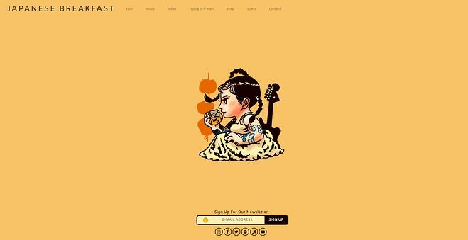音樂家網(wǎng)站是創(chuàng)新設(shè)計的另一個很好的參考。日本早餐樂隊更新了其網(wǎng)站的視覺效果,以配合即將發(fā)行的專輯。同樣,我們在主頁上看到一個突出的 CTA,帶有查看他們的音樂、巡演日期等的微妙鏈接。