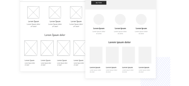 網(wǎng)站模型是在網(wǎng)站創(chuàng)建過程中制作的。雖然網(wǎng)站開發(fā)的方法各不相同,但大多數(shù)都包括五個(gè)主要階段:構(gòu)思和研究、線框圖、模型、原型制作和編程。在構(gòu)思/研究階段,網(wǎng)站和產(chǎn)品設(shè)計(jì)師確定網(wǎng)站需要完成什么以及需要包含什么以滿足客戶和用戶。接下來,團(tuán)隊(duì)將創(chuàng)建線框。線框是網(wǎng)站的藍(lán)圖,映射了基本功能、元素、內(nèi)容、布局。它作為設(shè)計(jì)師在頂部添加視覺元素的基礎(chǔ)。線框可以是低保真度或高保真度。在下面的例子中,左邊的線框是低保真度的,右邊的是高保真度的: