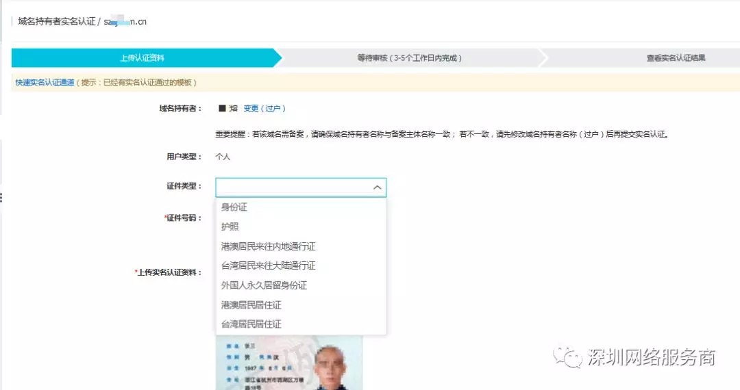 1:首先需要注冊(cè)一個(gè)域名,域名分為個(gè)人認(rèn)證和企業(yè)認(rèn)證。一般看用途,個(gè)人認(rèn)證只需要個(gè)人身份證信息填寫就行,企業(yè)認(rèn)證只需要企業(yè)營(yíng)業(yè)執(zhí)照信息填寫就行。認(rèn)證完后等待備用。