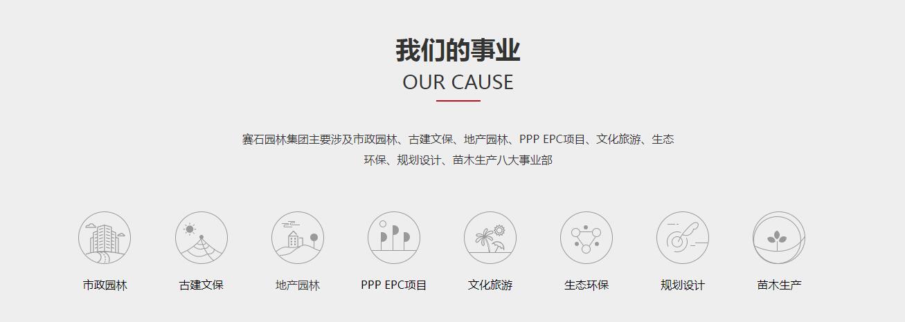??在介紹集團(tuán)業(yè)務(wù)事業(yè)板塊的時(shí)候,設(shè)計(jì)師很注重細(xì)節(jié)方面,每個(gè)業(yè)務(wù)都設(shè)計(jì)了對(duì)應(yīng)的icon圖標(biāo),讓網(wǎng)站整體呈現(xiàn)品牌形象,抓住瀏覽者的注意力,細(xì)節(jié)中見差異,為品牌價(jià)值加分。