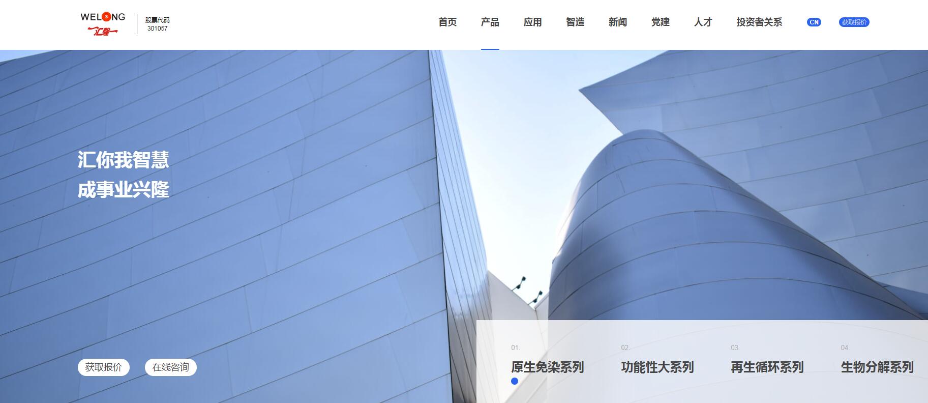 ??首先,我們先展示一個大屏的banner結(jié)合產(chǎn)品系列進行設計,清晰展示了四個系列的產(chǎn)品,同時如果需要獲取報價,或者在線咨詢,可以隨時發(fā)起。