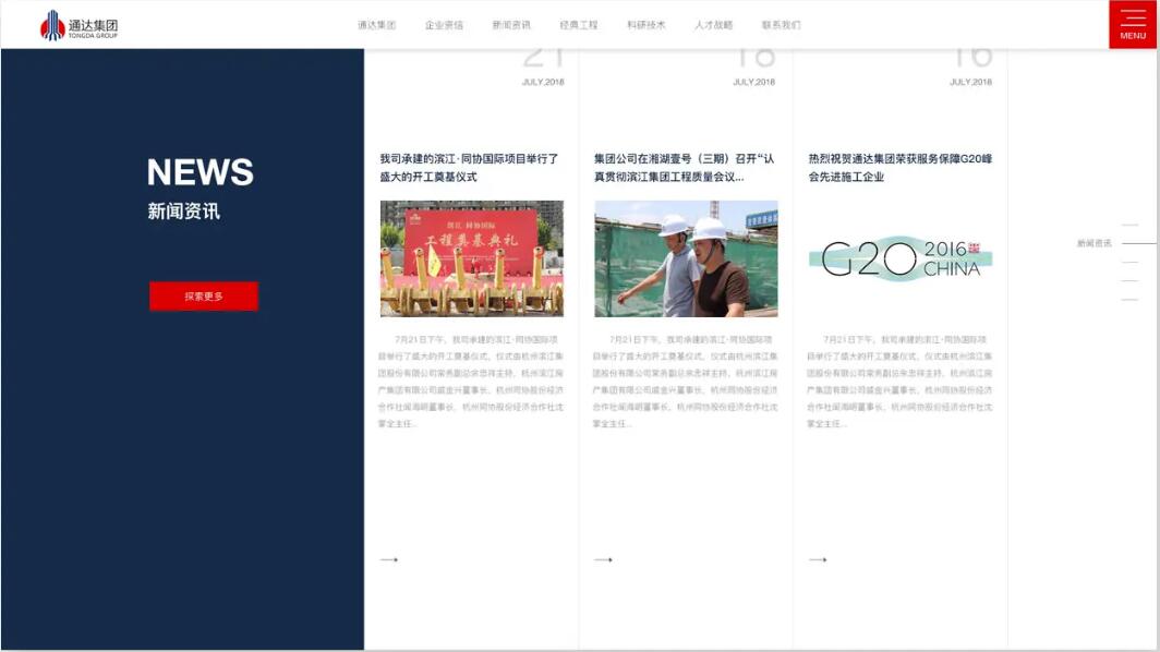 ??例如首頁新聞版塊,該網(wǎng)站改變了傳統(tǒng)的列表新聞?wù)故?,左?cè)用一塊深色的欄目導(dǎo)航,右側(cè)留白展示新聞,很有新意。