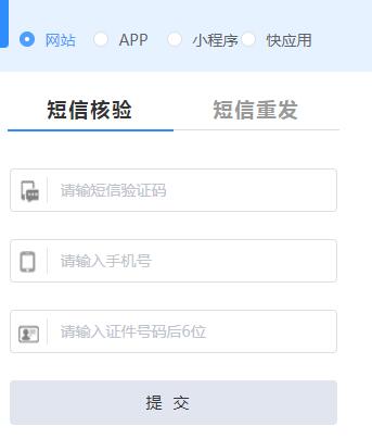 ??頁(yè)面右側(cè)短信核驗(yàn)——選擇網(wǎng)站——輸入短信驗(yàn)證碼——手機(jī)號(hào)——證件號(hào)碼后六位——提交