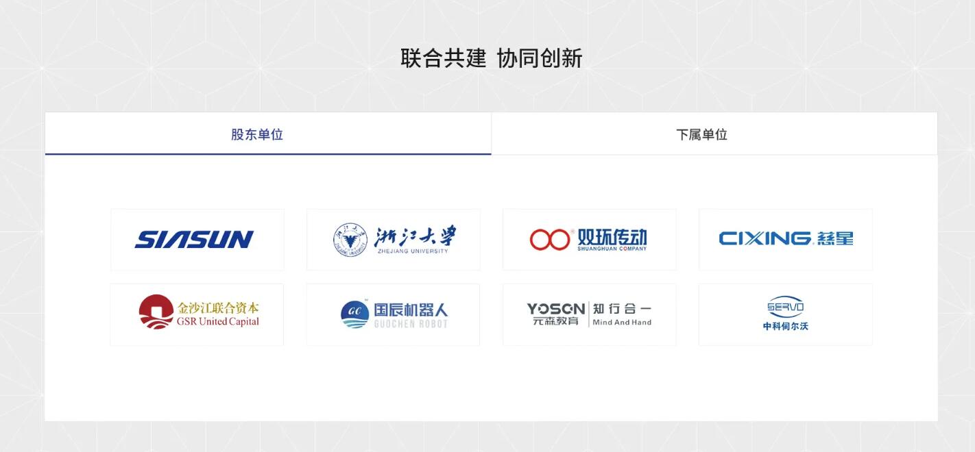 ??清晰展示股東單位和下屬單位的logo,讓用戶直觀了解參與機(jī)器人智能裝備創(chuàng)新中心的合作伙伴,并通過(guò)點(diǎn)擊功能進(jìn)一步了解每個(gè)單位的詳細(xì)信息。