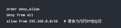 ??- 在".htaccess"文件中添加以下指令來限制網(wǎng)站只允許內(nèi)網(wǎng)訪問: