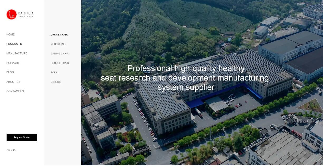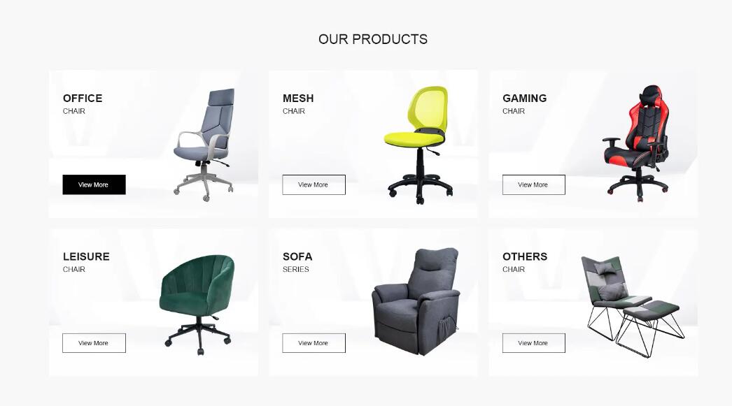 ??分類瀏覽:在頁面下拉后展示產(chǎn)品分類區(qū)塊,每個分類附有對應的椅子配圖,并可點擊進入相應產(chǎn)品系列頁面。