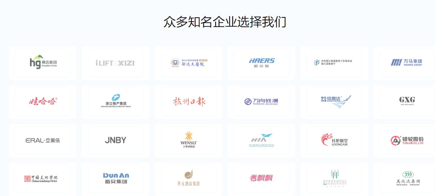 展示了眾多知名企業(yè)的Logo,增強了公司的可信度和品牌形象,向潛在客戶傳達了公司的實力和信譽,整齊排列:Logo排列整齊,視覺效果良好,提升頁面的專業(yè)感和美觀度。