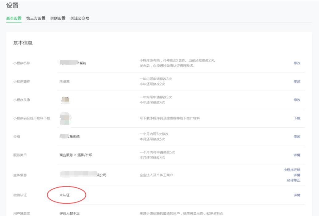 (1)點擊左側(cè)菜單欄下方的設(shè)置——基本信息——查看微信認證情況